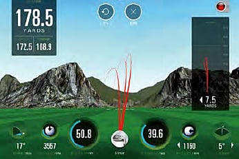 打ったボールの軌道を視覚化。ご自身のスイングの癖が分かります。また、打ったボールが何ヤードの地点に落ちたか(キャリー)、何ヤード転がったか(ラン)が分かるため、より実践に近い練習が可能です。