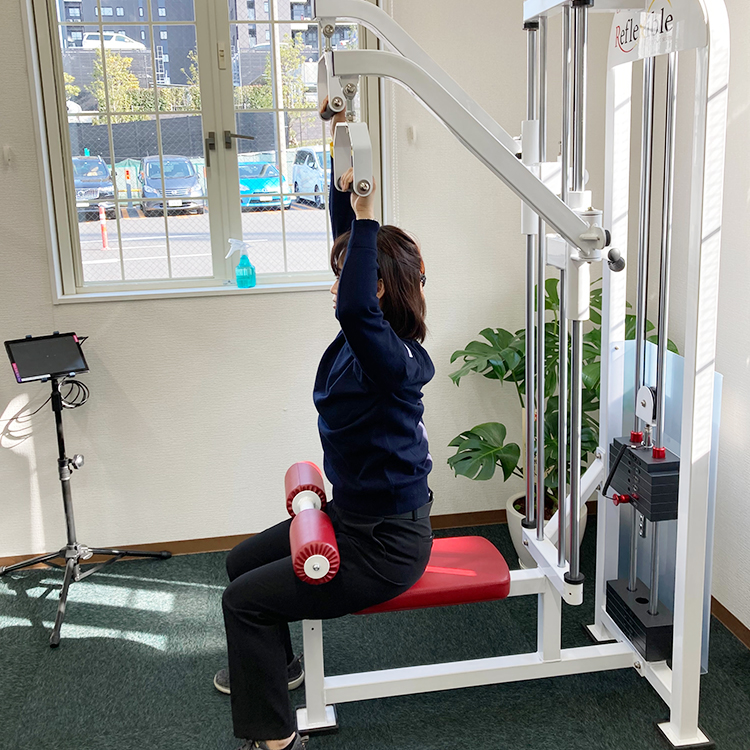 普段伸ばせないところもマシンを使ってストレッチ。柔軟性を高め、可動域を広げることで理想のゴルフスイングに近づけます。